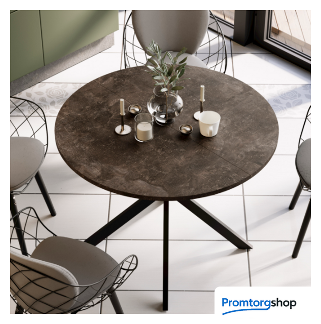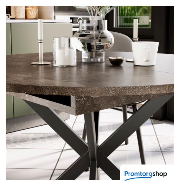 | Тип | обеденный стол для дома. Компактный обеденный стол «Мэдисон» тип 1 — идеальное решение для кухни небольшой площади. Стол привлечёт внимание оригинальным исполнением. Он выглядит стильно, а необычная форма ножек призвана подчеркнуть современность модели. Современное цветовое оформление, стильный дизайн. Круглый обеденный стол на перекрещённых ножках смотрится изящно, лаконично и ненавязчиво в любом интерьере. Функциональность. Модель имеет синхронный механизм раздвижения со вставкой «бабочка», которая укладывается вручную. Это выручает в моменты прихода гостей, которых хочется разместить свободно и с комфортом. Дополнительная вставка в цвет столешницы продолжает элегантный образ изделия, делая его целостным и завершённым. Надёжность конструкции. Несмотря на сдержанный внешний вид, стол «Мэдисон» тип 1 обладает рядом достоинств: высокая надёжность, благодаря прочности металла; устойчивость, достигается за счёт правильных пропорций перекрещённых металлических опор. Страна производства: Россия |