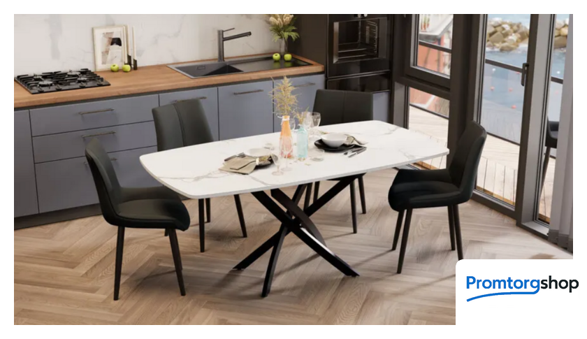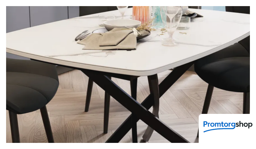 | Тип | обеденный стол для дома. Стол обеденный «Ниагара» Тип 1 смотрится эффектно и способен украсить любой современный интерьер. В нем соединены модные тенденции, минимализм и лаконичность. Данная модель создана для тех, кто стремится быть в тренде, кому нравится экспериментировать с новыми дизайнами. Материалы. Выразительные формы столешницы из ЛДСП 16 мм смягчают скругленные углы. Закаленное стекло толщиной 4 мм привлекает внимание окружающих и делает его подходящим ко многим современным стилям. Особого внимания заслуживает конструкция основания из четырех оригинально соединенных опор, которые покрыты порошковой краской «Черный муар». |