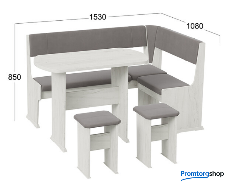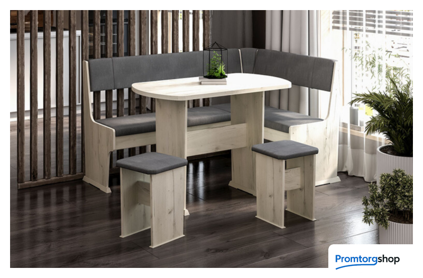 | Состав набора | уголок кухонный мягкий, 2 табурета, стол |