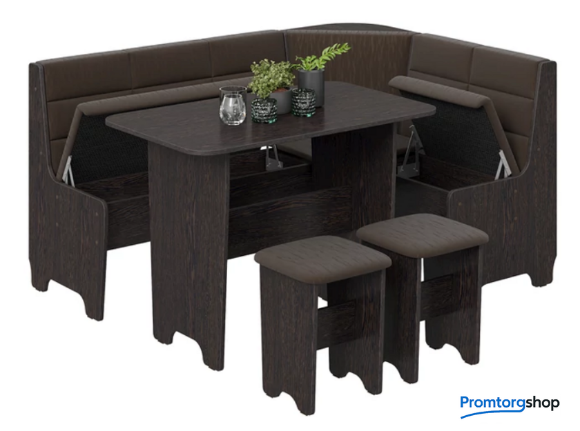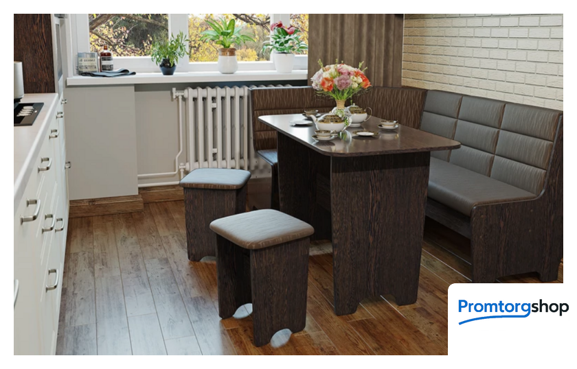 | Состав набора | уголок кухонный мягкий, 2 табурета, стол. Максимальная распределенная нагрузка на стол: 15 кг. Максимальная нагрузка на одно посадочное место: 75 кг |