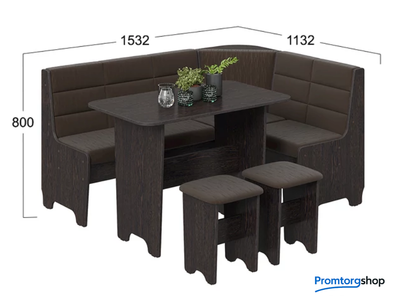 | Тип | обеденная группа для дома. Тип сборки: универсальная. Размеры мягкого уголка: 153.2×113.2×80 см; глубина сиденья: 36 см, высота спинки: 40 см |