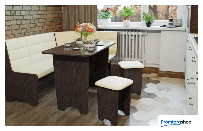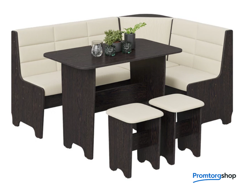 | Состав набора | уголок кухонный мягкий, 2 табурета, стол. Максимальная распределенная нагрузка на стол: 15 кг. Максимальная нагрузка на одно посадочное место: 75 кг |