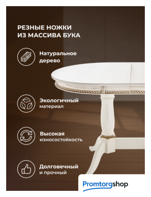 | Материал опор | дерево (массив). Порода дерева бук. Форма опор круглая/овальная. Кол-во точек опоры 2. |