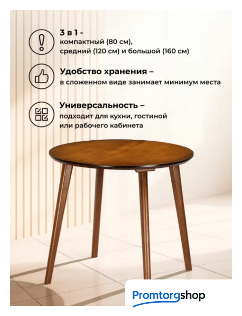 | Форма стола | круглая (в сложенном виде), овальная (в разложенном виде). Форма поставки в разобранном виде |