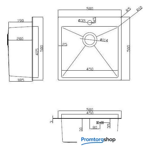 врезная на столешницу, нержавеющая сталь, размеры: 50x50 см, в шкаф 50 см