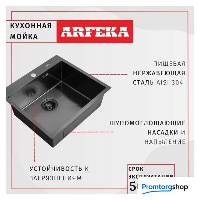 врезная на столешницу, нержавеющая сталь, размеры: 50x50 см, в шкаф 60 см