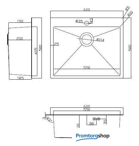 врезная на столешницу, нержавеющая сталь, размеры: 60x50 см, в шкаф 60 см