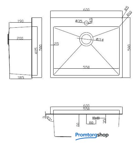 врезная на столешницу, нержавеющая сталь, размеры: 60x50 см