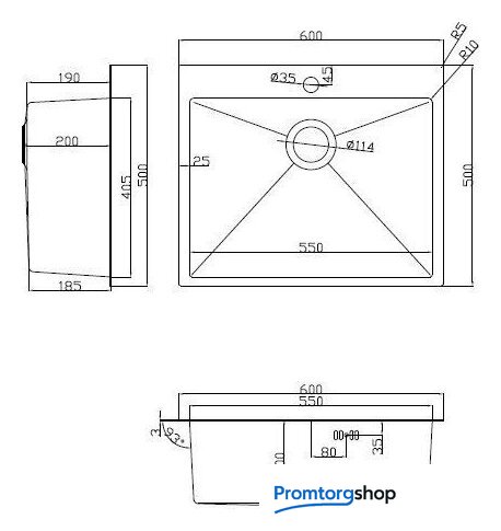 врезная на столешницу, нержавеющая сталь, размеры: 60x50 см, в шкаф 60 см