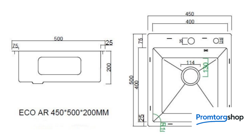 | Перелив | в основной чаше, прямоугольный. 2 отверстия для смесителя/вентиля |