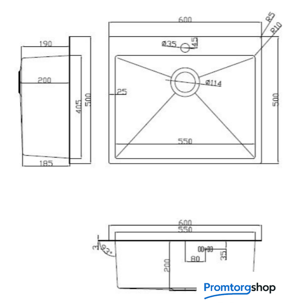 | Перелив | в основной чаше, прямоугольный. 2 отверстия для смесителя |