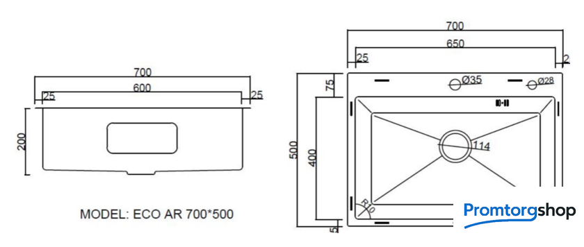 ARFEKA ECO AR мойка 700*500, коландер, дозатор SATIN