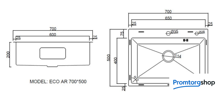 ARFEKA ECO AR мойка 700*500, коландер G, дозатор GOLD