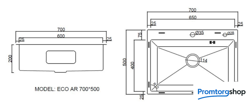 ARFEKA ECO AR мойка 700*500, коландер G, дозатор BLACK