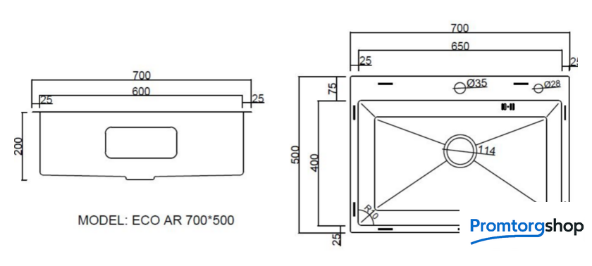 ARFEKA ECO AR мойка 700*500, коландер G, дозатор BLACK