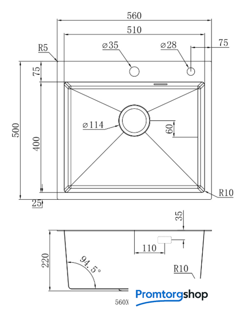 | Ширина мойки | 56 см |