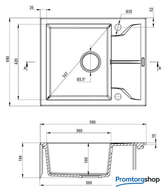 врезная на столешницу, искусственный камень, размеры: 59x49 см, в шкаф 50 см