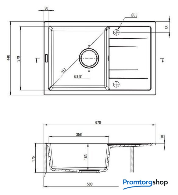 Диаметр сливного отверстия | 3.5" |