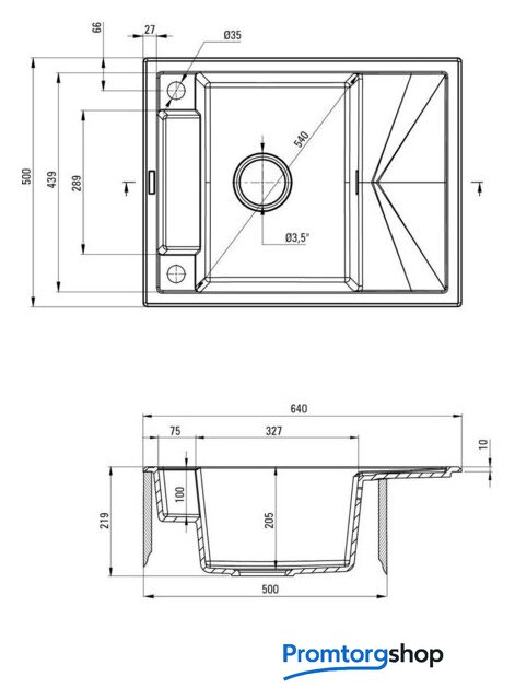 Диаметр сливного отверстия | 3.5" |