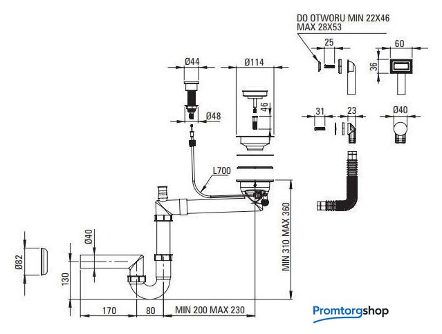 Комплектация | клапан-автомат, сифон, отвод для посудомоечной/стиральной машины |
