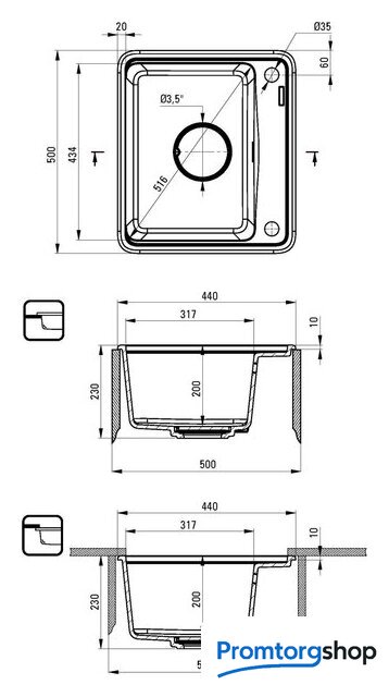 Способ установки | врезная на столешницу, врезная под столешницу |