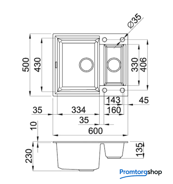 Ширина мойки 60 см