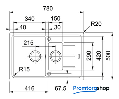 врезная на столешницу, искусственный камень, размеры: 78x50 см, в шкаф 60 см
