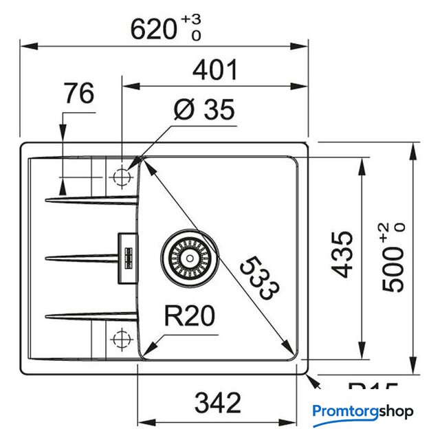 врезная на столешницу/врезная вровень со столешницей, искусственный камень, размеры: 62x50 см, в шкаф 45 см