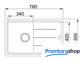 врезная на столешницу, искусственный камень, размеры: 78x50 см, глубина чаши: 20 см, в шкаф шириной от 45 см, клапан-автомат