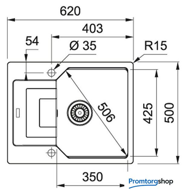 врезная на столешницу/врезная вровень со столешницей, искусственный камень, размеры: 62x50 см, в шкаф 45 см