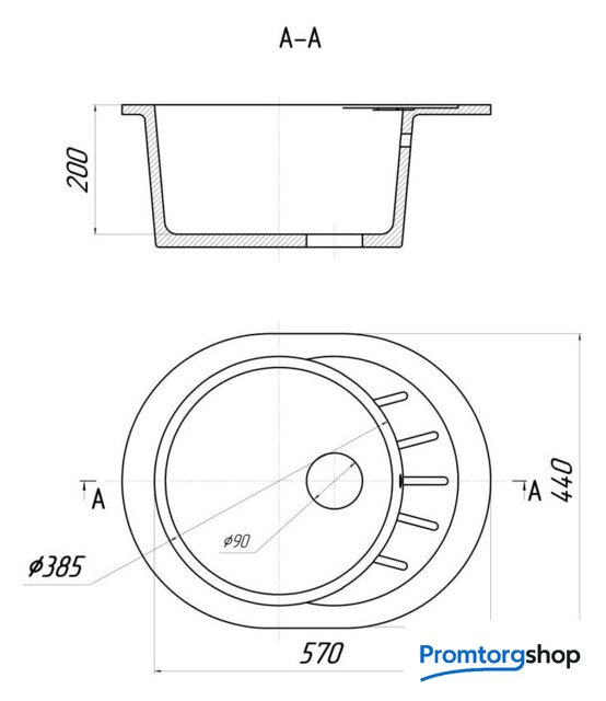 врезная на столешницу, искусственный камень, размеры: 57x44 см