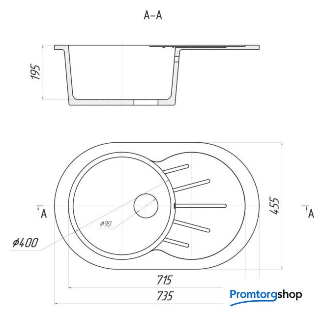 врезная на столешницу, искусственный камень, размеры: 73.5x45.5 см