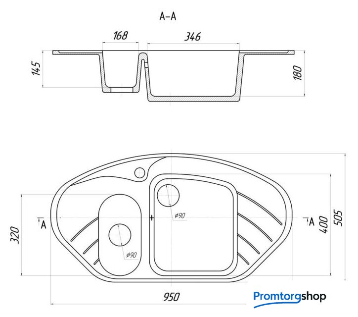 врезная на столешницу, искусственный камень, размеры: 95x50.5 см