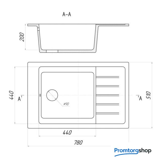 врезная на столешницу, искусственный камень, размеры: 78x51 см