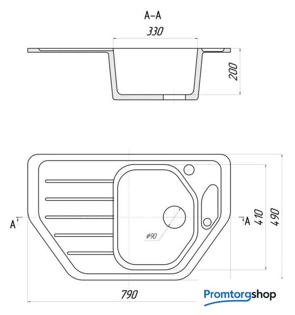 врезная на столешницу, искусственный камень, размеры: 79x49 см, в шкаф 60 см