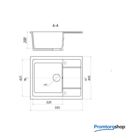 врезная на столешницу, искусственный камень, размеры: 59.5x49.5 см