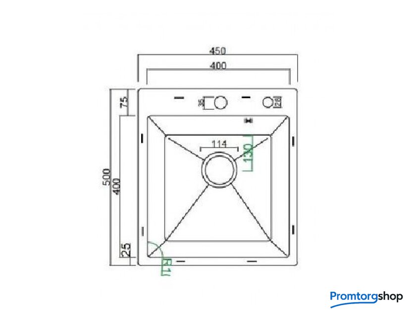 | Перелив | в основной чаше. Отверстие под смеситель + Отверстие под дозатор |