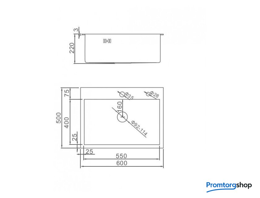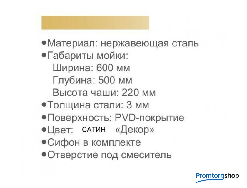 | Перелив | в основной чаше. Отверстие под смеситель + Отверстие под дозатор |