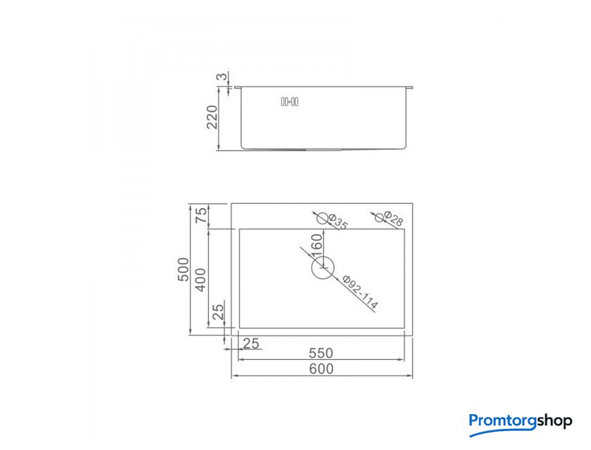 | Перелив | в основной чаше. Отверстие под смеситель + Отверстие под дозатор |