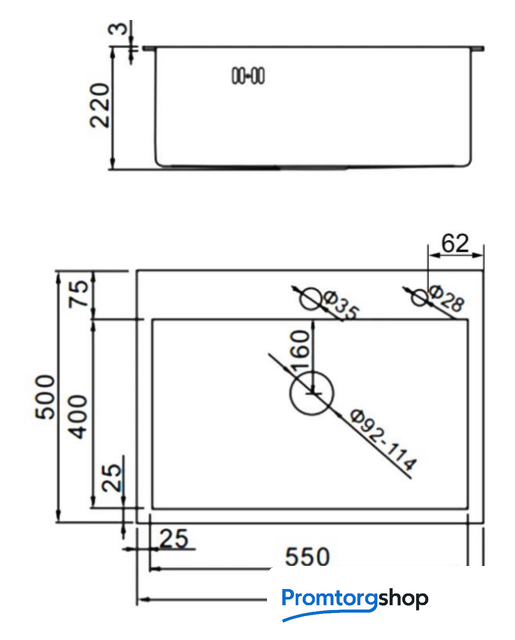 | Перелив | в основной чаше. Отверстие под смеситель + Отверстие под дозатор |