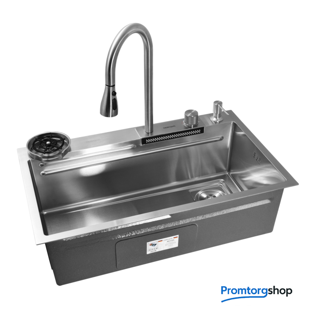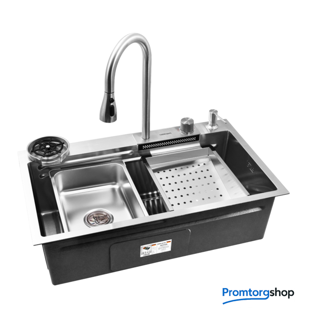 | Смеситель | Смеситель имеет 4 варианта подачи воды (Классическая струя, под давлением, сеточка и водопад), с выдвижной лейкой, гибким шлангом и функцией водопада |