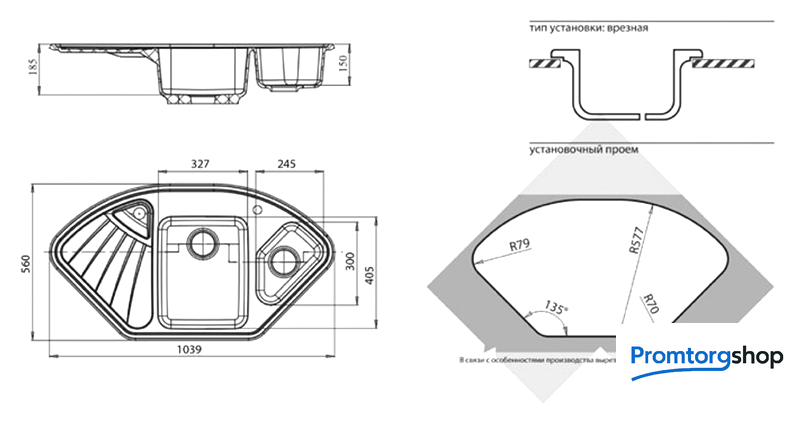 врезная на столешницу, искусственный камень, размеры: 103.9x56 см