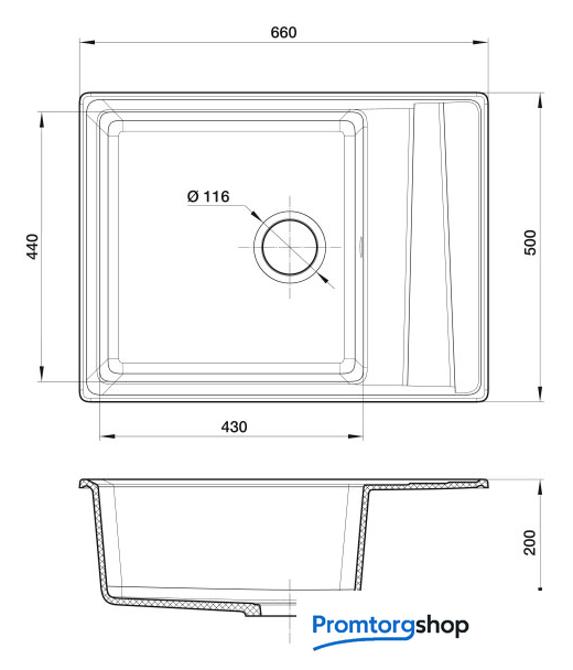 врезная на столешницу, искусственный камень, размеры: 66x50 см, в шкаф 50 см по цене 348,00 руб.