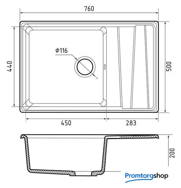 врезная на столешницу, искусственный камень, размеры: 76x50 см, в шкаф 60 см