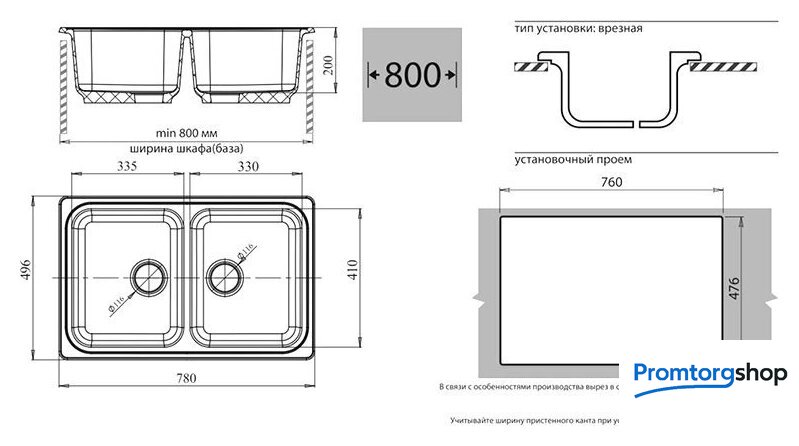 врезная на столешницу, искусственный камень, размеры: 78x49.6 см, в шкаф 80 см