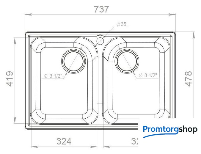 врезная на столешницу, искусственный камень, размеры: 73.7x47.8 см, в шкаф 80 см