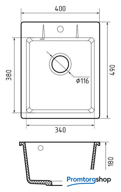врезная на столешницу, искусственный камень, размеры: 40x49 см, в шкаф 40 см