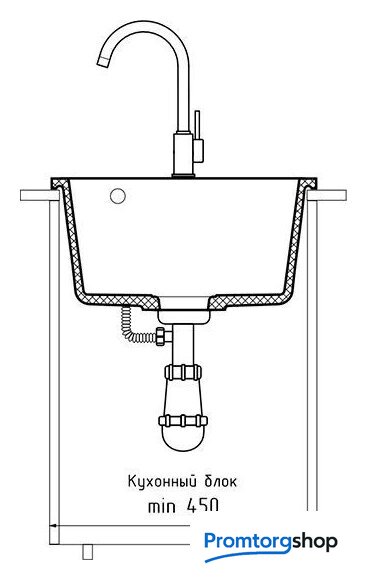врезная на столешницу, искусственный камень, размеры: 44x49 см, в шкаф 45 см