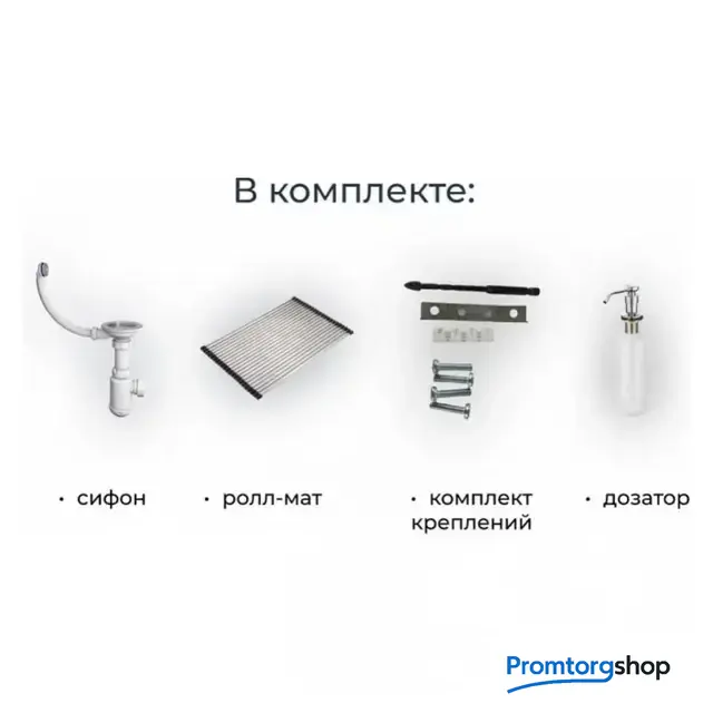 | Комплектация | Сифон, дозатор, крепления, решетка (ролл-мат) |