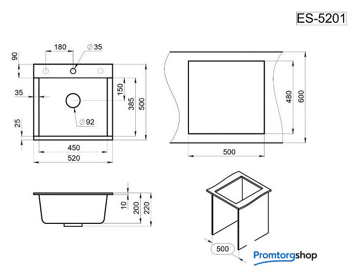 врезная на столешницу, искусственный камень, размеры: 50x52 см, в шкаф 50 см